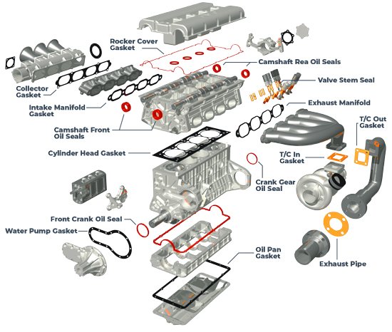 Gaskets and seals are a key component of cars, motorcycles and quad bikes to help prevent oils, coolants, and other lubricants from entering the engine and compromising the vehicle’s performance. They are used throughout the engine’s mechanics, such as on the Exhaust Gas Recirculation (EGR) valves to help reduce harmful nitrogen oxide emissions and to prevent leakage from the camshaft and rocker covers.
