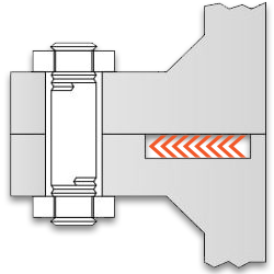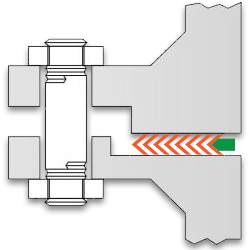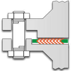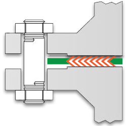 The outer rings rest on the flange bolts, thus locating the gasket centrally on the raised face of the flange. It also supports the sealing element and resists ‘blow out’. The ring provides a ‘stop’ preventing over-compression of the sealing element.